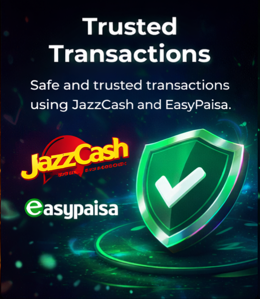 Safe and trusted transactions using JazzCash and EasyPaisa.